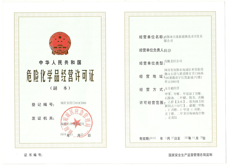 天德牌M15~M30低比例甲醇..Honor of qualification